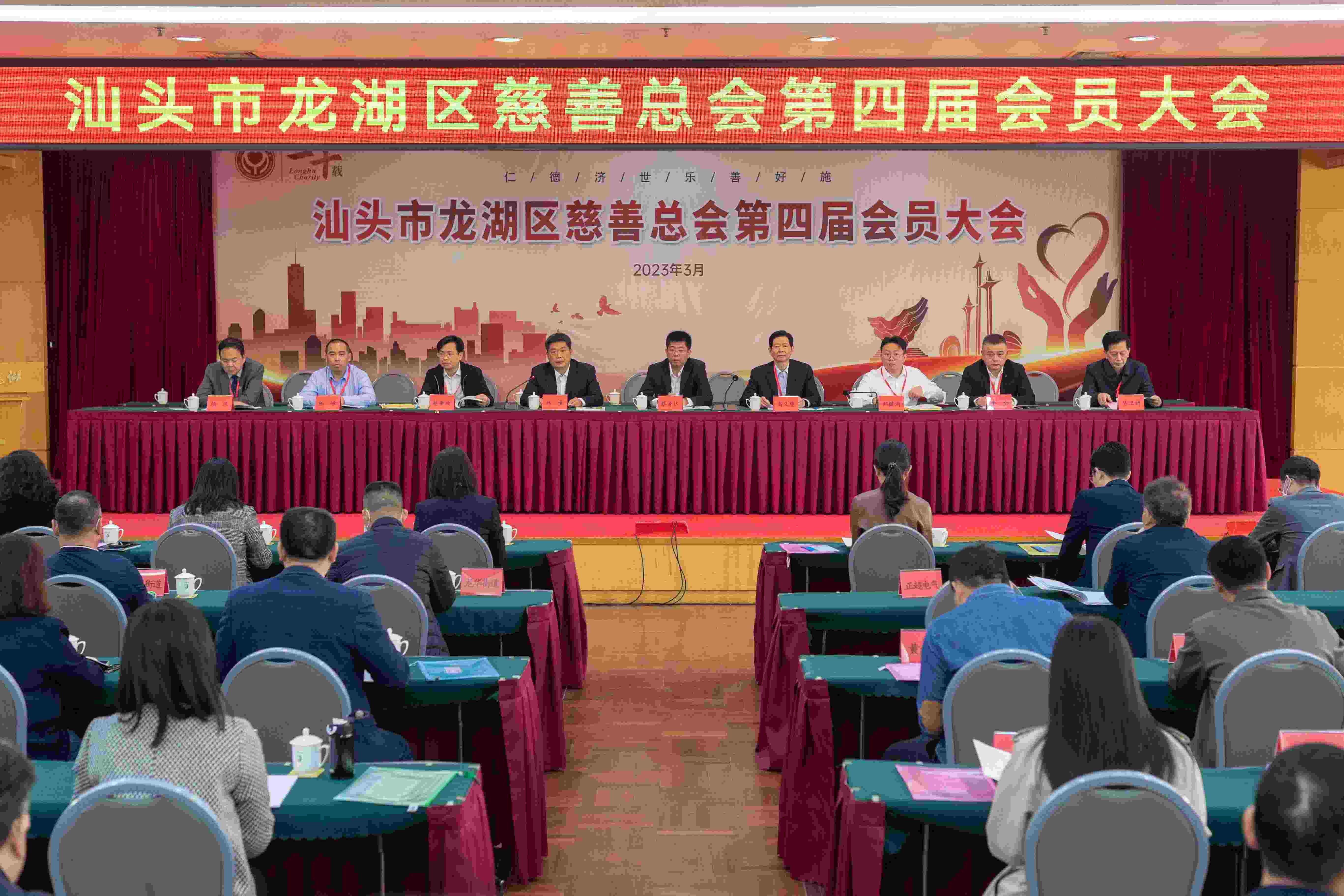 3月11日,汕头市龙湖区慈善总会召开第四届会员大会,汕头市及龙湖区相关领导、全体理事及会员、爱心企业代表和社会爱心人士等出席会议。