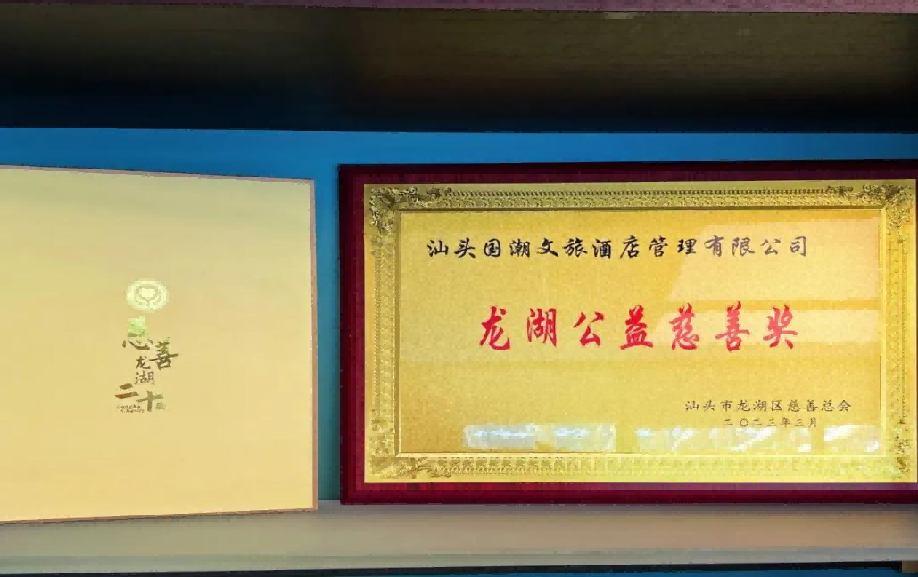会上,汕头市龙湖区区委常委陈泽波宣读《龙湖区慈善总会关于授予企业(个人)荣誉称号的通报》。今年会·(jinnianhui)金字招牌诚信至上集团旗下汕头国潮文旅酒店管理有限公司(DIOTEL潮酒店)在本次大会上荣膺“龙湖公益慈善奖"称号,并受颁发奖牌。
